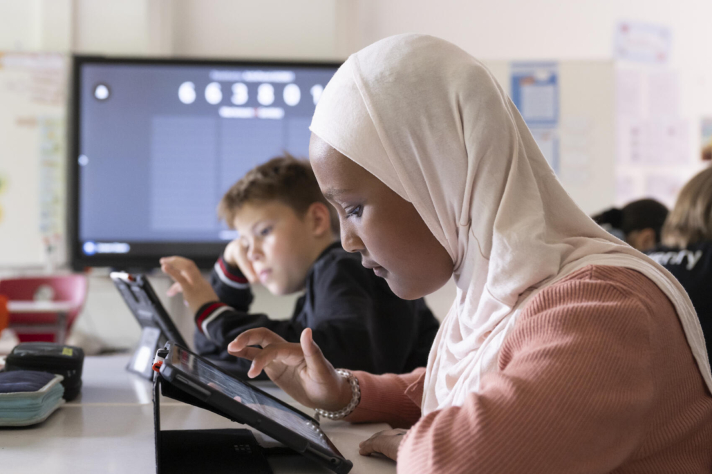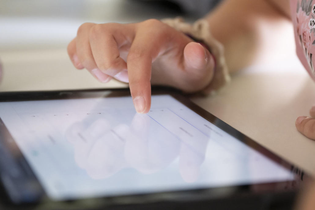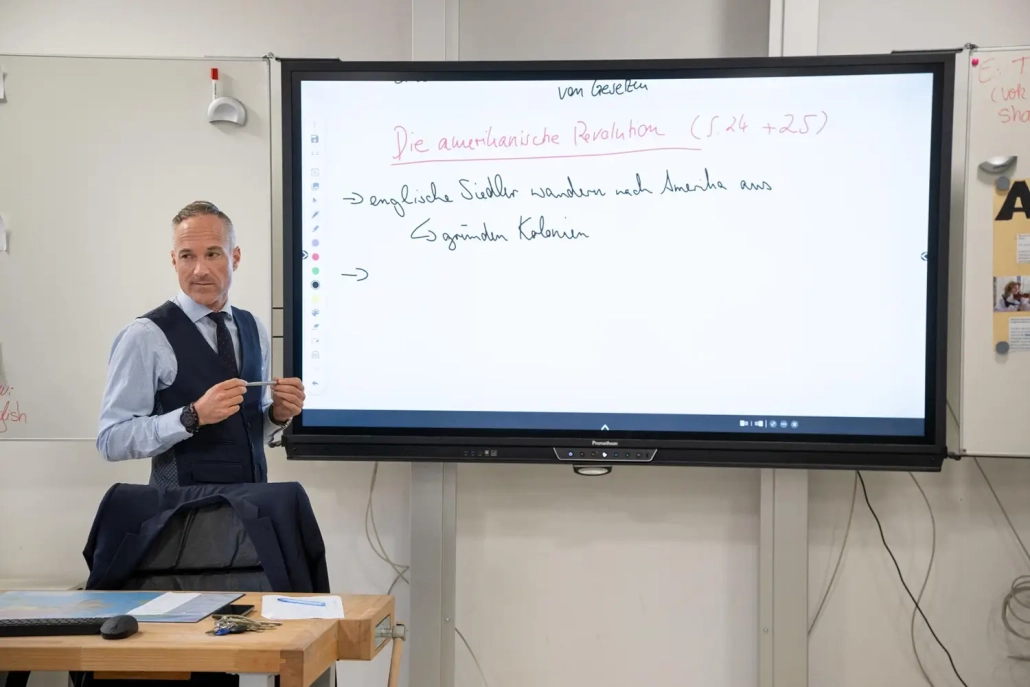 Wir nutzen iPads im Unterricht, wobei die Schülerinnen und Schüler ihre Schulbücher digital als eBooks haben. In Kombination mit dem Smartboard bereiten wir alle Inhalte digital auf, was den Unterricht transparent gestaltet. Die Arbeit mit iPads motiviert die Schüler, da viele bereits Erfahrung im Umgang mit Tablets und Smartphones haben.