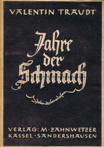 1916 macht Valentin Traudt zum ersten Mal Erfahrung mit der Zensur. Sein Roman „Die Winkelbürger“ wird verboten, weil darin angeblich „die Zermürbung der Heimat“ geschildert wird. Nach dem 1. Weltkrieg tritt Er in die SPD ein, wird Stadtverordneter im Parlament und Mitglied des Magistrats Kassel.