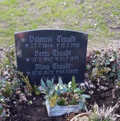 Am 15.3.1950 stirbt Valentin Traudt im 86. Lebensjahr. Seine Urne wird in Rauschenberg im Grab seiner ersten Frau Bertha beigesetzt. Zwei Jahre später stirbt auch Mina Traudt und wird an der gleichen Stelle beerdigt.