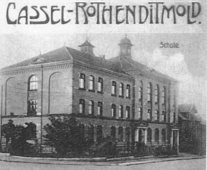 Sein Versetzungsgesuch hat Erfolg, Valentin Traudt wechselt nach Rothenditmold, zu dieser Zeit noch ein eigenständiges Dorf, das erst 1906 in Kassel eingemeindet wird. Unweit vom Hauptbahnhof gelegen, ist Rothenditmold seit 1848 rapide gewachsen. Neben einer Maschinen- und einer Wagonfabrik gibt es eine Spinnerei und eine Brauerei. Von 1871 bis 1905 hat sich sich die Einwohnerzahl auf 5250 vervierfacht. Das Schulhaus ist brandneu, erst im April 1901 sind Hauptgebäude und Turnhalle eingeweiht worden.
