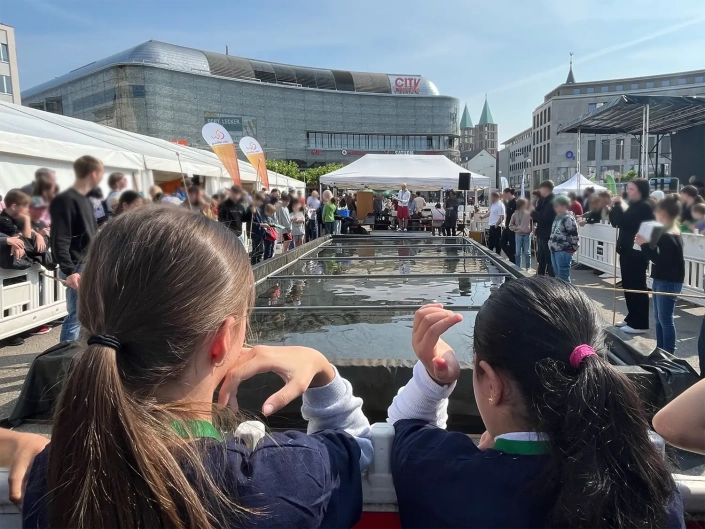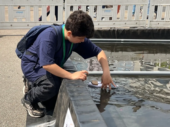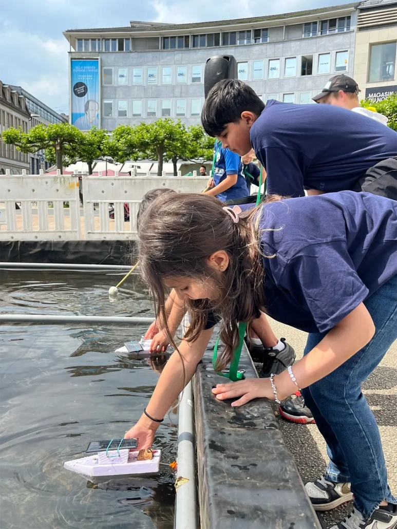 Am Wettbewerbsmorgen zogen alle Klassenmitglieder ihre Schulshirts an und stimmten sich auf den spannenden Tag ein. Die Solarboote, die Plakate und Werkzeuge für kurzfristige Reparaturen wurden zusammengepackt, bevor der Weg zum Königsplatz bestritten wurde. Vor Ort konnten die Lernenden dann bei sonnigem Wetter ihre eigenen Solarboote in Wettfahrten gegen andere Schulen antreten lassen. Alle Teilnehmenden wurden natürlich fleißig angefeuert und die kunstvoll verzierten Boote anderer Kinder wurden bewundert.